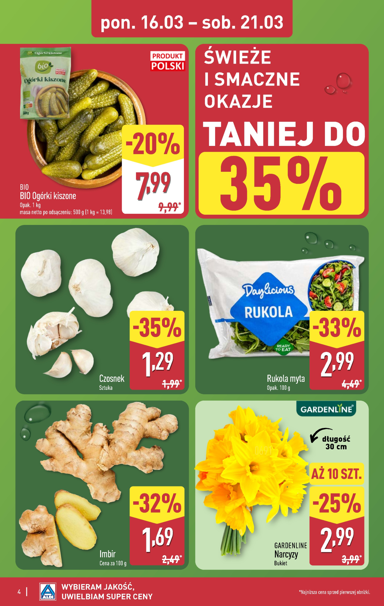 Zniżki w ramach promocji Aldi offerta są ograniczone terminowo pon 16. 03. 2026 do sob 21. 03. 2026. Zaoszczędź pieniądze, kupując produkty z aktualnego prospektu reklamowego Aldi. Zespół Kupino.pl codziennie aktualizuje dla Ciebie informacje o prospektach reklamowych Aldi i innych sieci handlowych z całej Polski. Aktualnie na Kupino.pl znajdziesz 438 promocji 159 sieci handlowych.