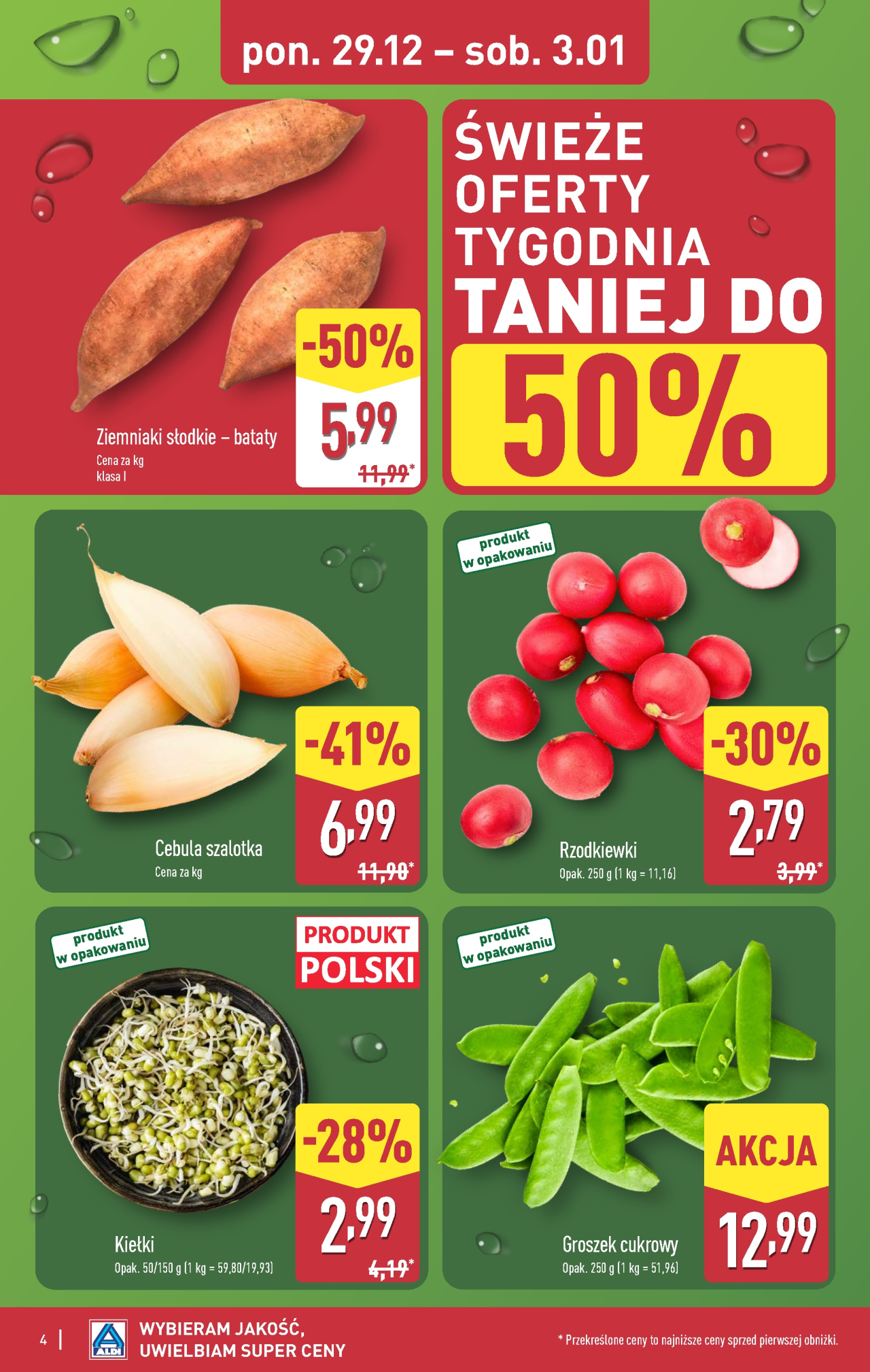 Zniżki w ramach promocji Aldi offerta są ograniczone terminowo pon 29. 12. 2025 do sob 3. 01. 2026. Zaoszczędź pieniądze, kupując produkty z aktualnego prospektu reklamowego Aldi. Zespół Kupino.pl codziennie aktualizuje dla Ciebie informacje o prospektach reklamowych Aldi i innych sieci handlowych z całej Polski. Aktualnie na Kupino.pl znajdziesz 221 promocji 159 sieci handlowych.