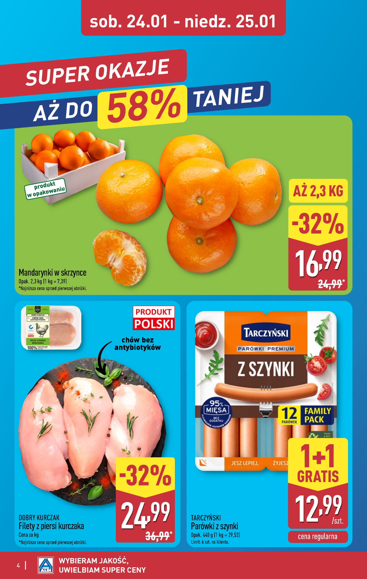 Zniżki w ramach promocji Aldi offerta są ograniczone terminowo czw 22. 01. 2026 do nie 25. 01. 2026. Zaoszczędź pieniądze, kupując produkty z aktualnego prospektu reklamowego Aldi. Zespół Kupino.pl codziennie aktualizuje dla Ciebie informacje o prospektach reklamowych Aldi i innych sieci handlowych z całej Polski. Aktualnie na Kupino.pl znajdziesz 226 promocji 159 sieci handlowych.