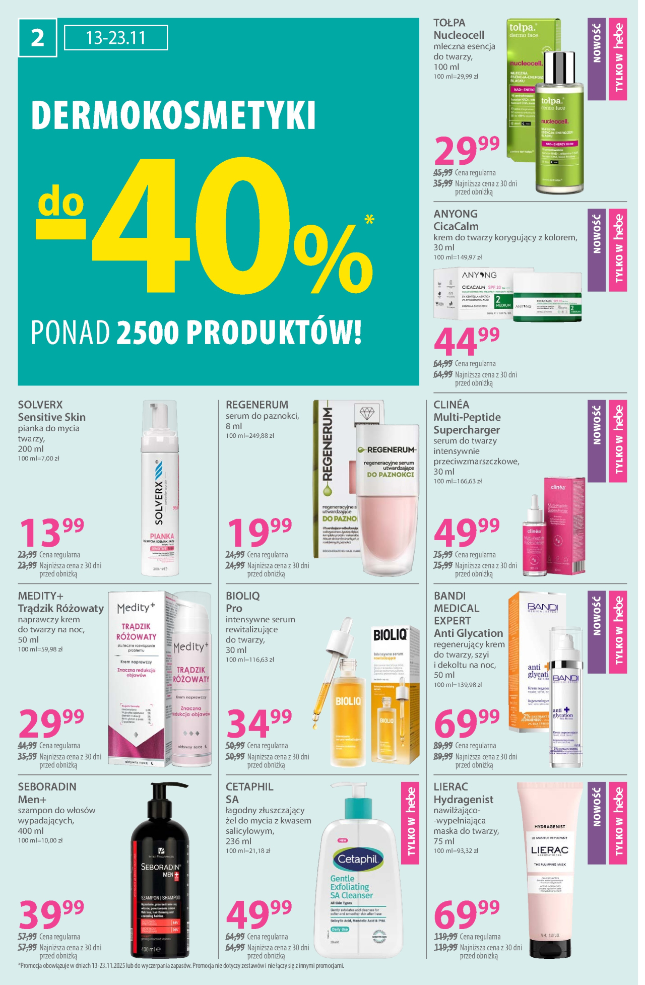 Zniżki w gazetce promocyjnej ograniczone są terminowo od pią 7. 11. 2025 do nie 23. 11. 2025. Zespół Kupino.pl codziennie aktualizuje dla Ciebie informacje o gazetkach promocyjnych Hebe - drogerie i innych sieci handlowych z całej Polski. Aktualnie znajdziesz na Kupino.pl 229 gazetek promocyjnych 159 sieci handlowych. Zaoszczędź czas i pieniądze, chroń środowisko, przeglądając gazetki na Kupino.pl i kupując produkty z gazetek promocyjnych Hebe - drogerie.