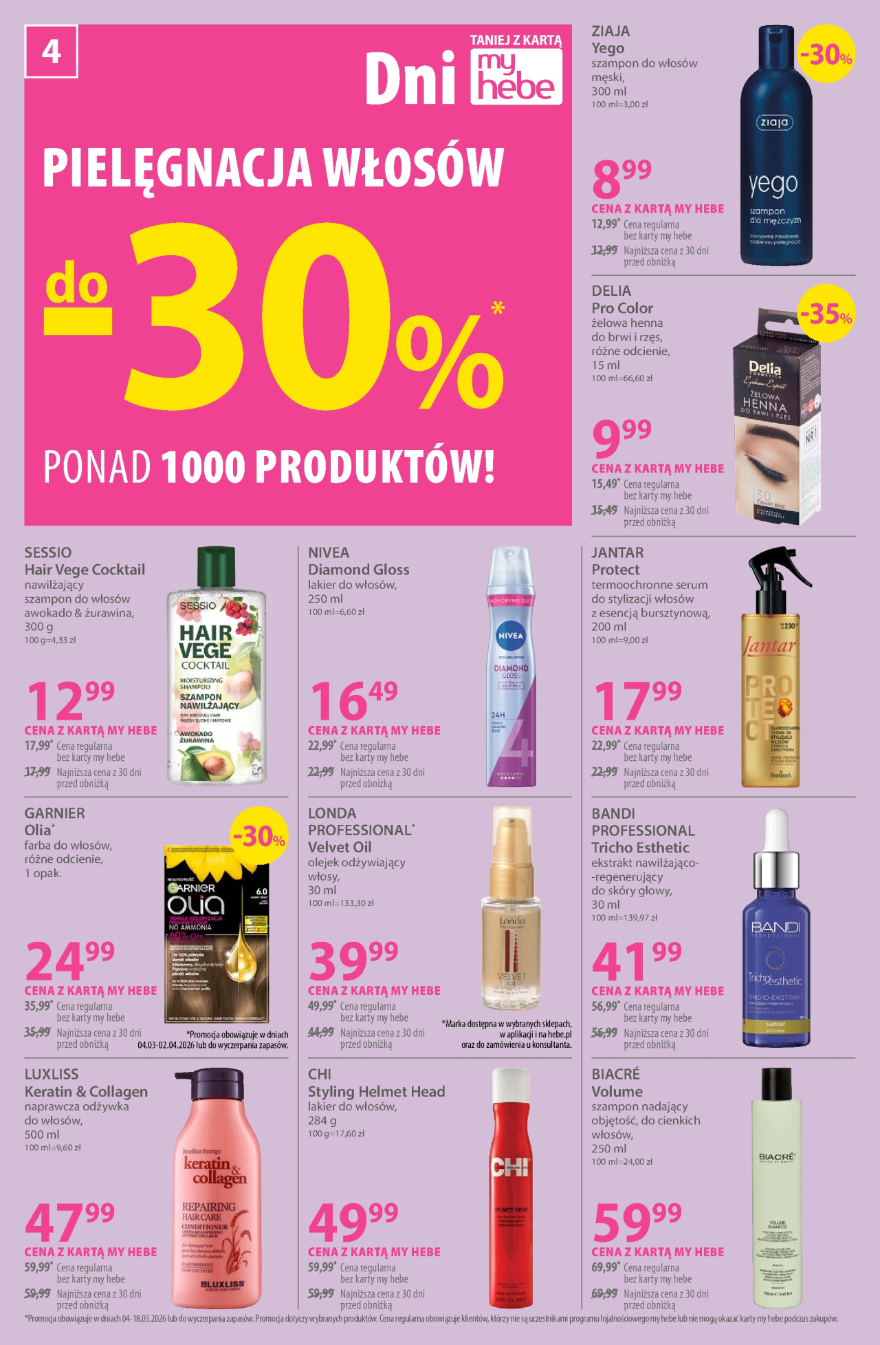 Zniżki w ramach promocji Hebe - drogerie gazetka są ograniczone terminowo śro 4. 03. 2026 do śro 18. 03. 2026. Zaoszczędź pieniądze, kupując produkty z aktualnego prospektu reklamowego Hebe - drogerie. Zespół Kupino.pl codziennie aktualizuje dla Ciebie informacje o prospektach reklamowych Hebe - drogerie i innych sieci handlowych z całej Polski. Aktualnie na Kupino.pl znajdziesz 231 promocji 159 sieci handlowych.